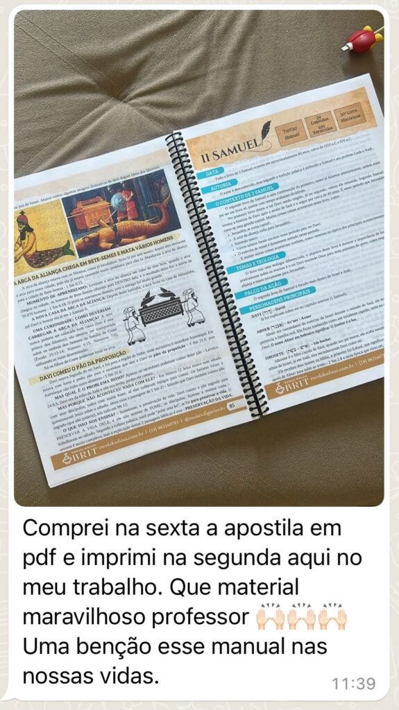No MANUAL BRIT, você terá acesso a um resumo didático, profundo, ilustrado de todos os 39 livros do antigo testamento – bíblia evangélica (garanto que não há nada como esse material na internet)